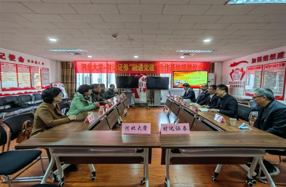 按照学校党史学习教育工作部署和学院党史学习教育实施方案,学院党委与财达证券保定市分公司合作启动了“融通党建”合作基地创建工作。12月8日,合作基地揭牌仪式和首次交流活动在财达证券股份有限公司保定市分公司会议室隆重举行。