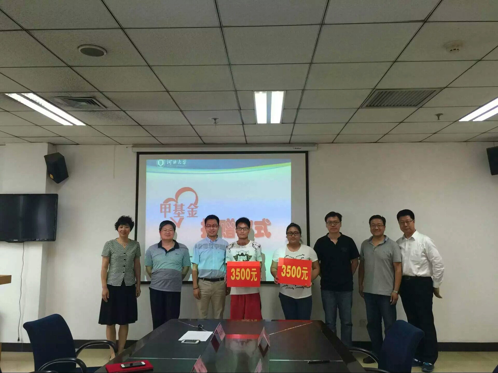 6月3日,“甲基金”资助仪式在新校区经济学院会议室举行。校友代表杨川、徐东旭;经济学院院长王金营、党委书记张改清、党委副书记张万兴、副院长尹成远;受资助学生、学生辅导员等人参加了资助仪式。