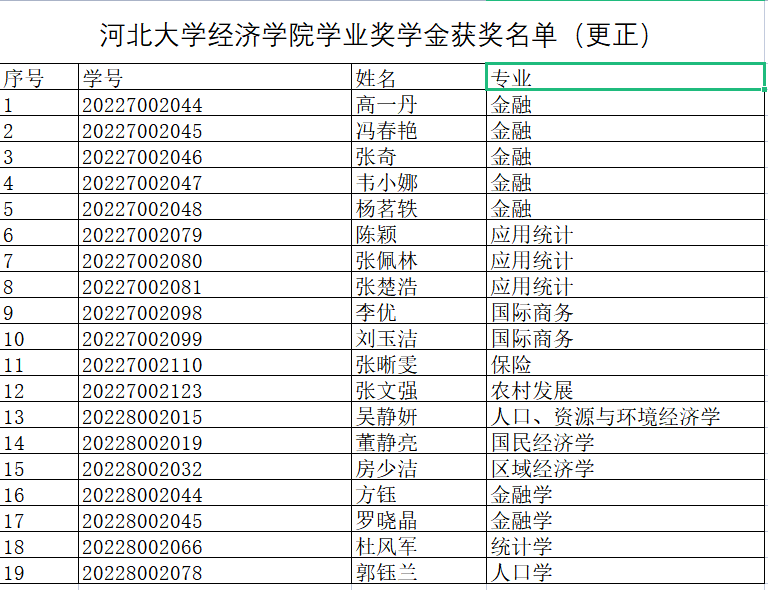 河北大学经济学院2021-2022学年硕士研究生一年级学业奖学金获奖名单