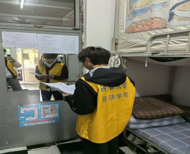 为培育学生健康生活理念,提升安全防范意识,营造文明向上新风尚,2024年11月13日,河北大学经济学院于进行宿舍安全常态化检查。检查内容包括制度张贴、私搭电线、违章用电、门口堆放物品、是否人走断电和卫生状况等。