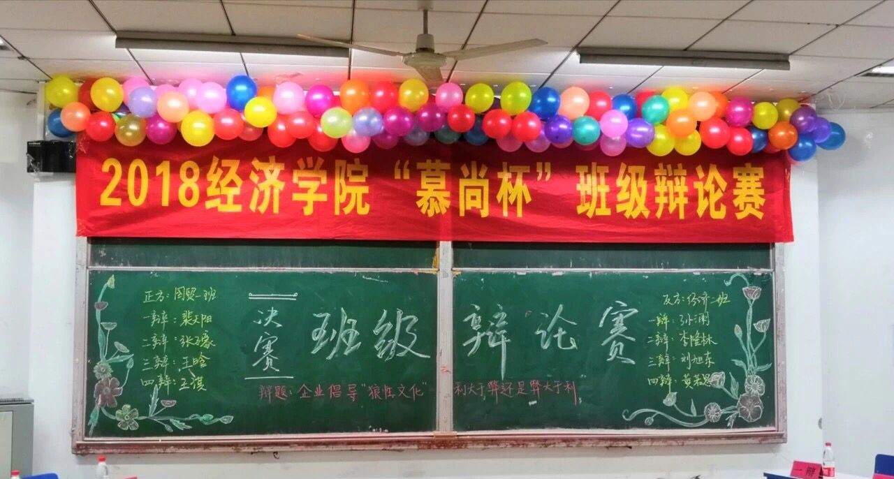 2018年10月25日到11月24日,河北大学经济学院学生会学习部主办了2018级“慕尚杯”班级辩论赛。出席辩论赛的嘉宾有学生会主席团,团委副书记,自强社社长,15、16级、17级辩论队队长,学生会各部部长以及经济学院学生。