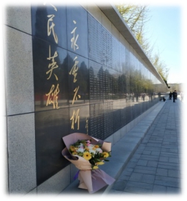 情与抱负赋予了这片土地,献给了这方人民。在纪念碑前,志愿者怀着沉重的心情默哀,并在纪念碑下作出郑重承诺,将不负先辈的厚望,无愧祖国的培育,用一生的坚定与坚持奋发图强,报效家国。向烈士墓献花并深深地鞠躬后,仪式结束,同学们自觉将墓园打扫干净。