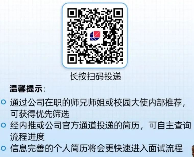 简历投递→简历筛选→HR初试→专业复试→OFFER发放→协议签订。